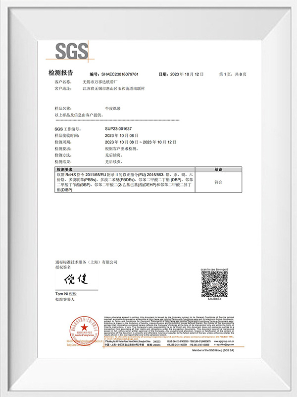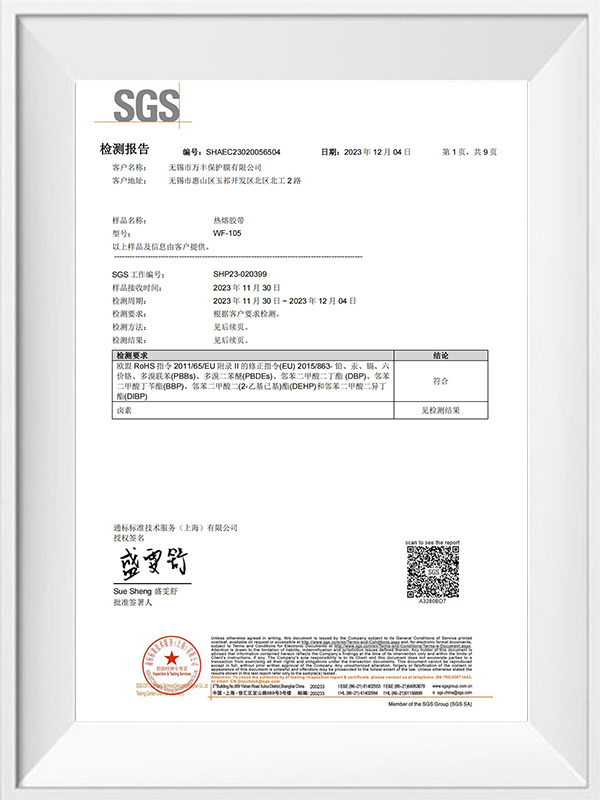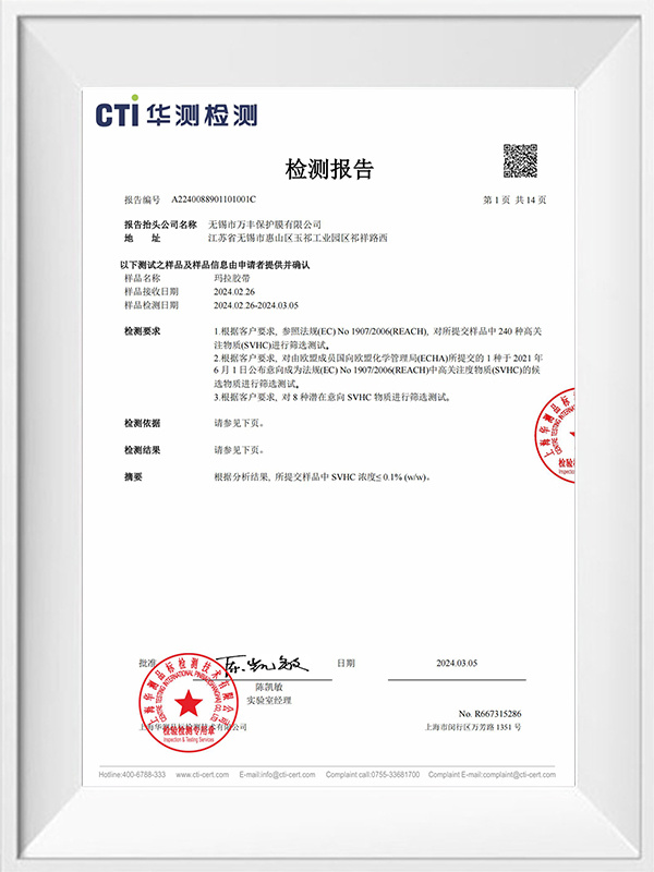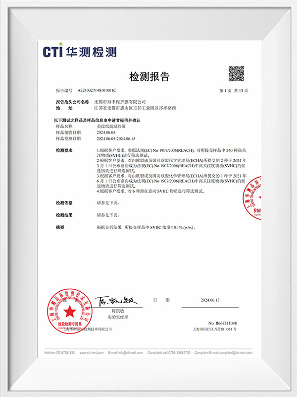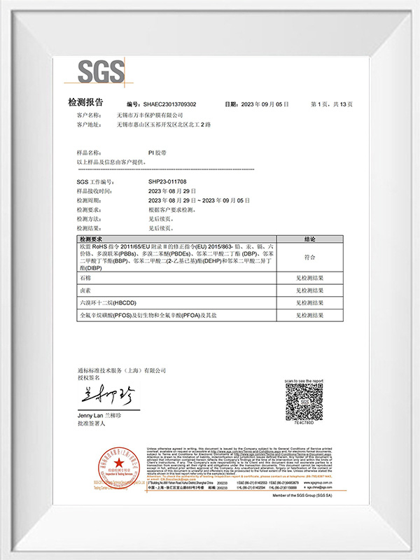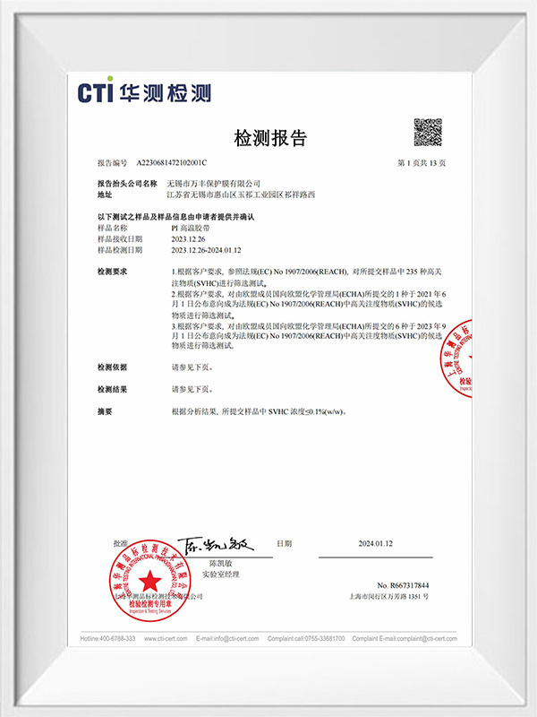 Отчет об испытаниях REACH высокотемпературной ленты PI